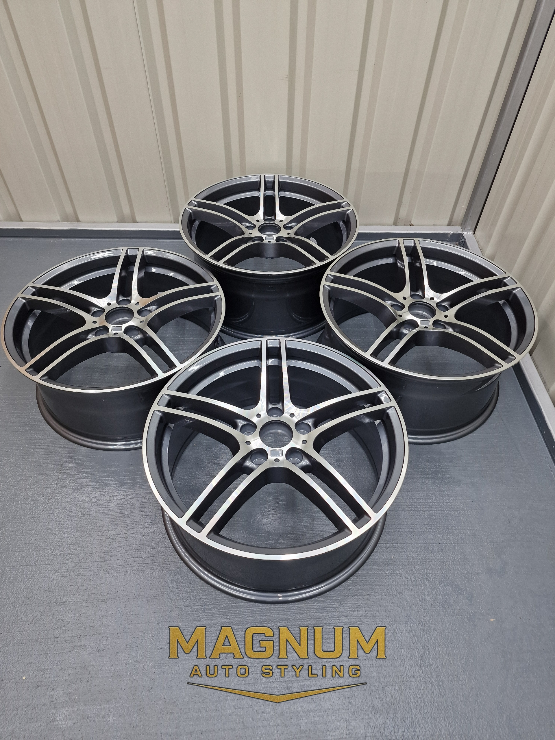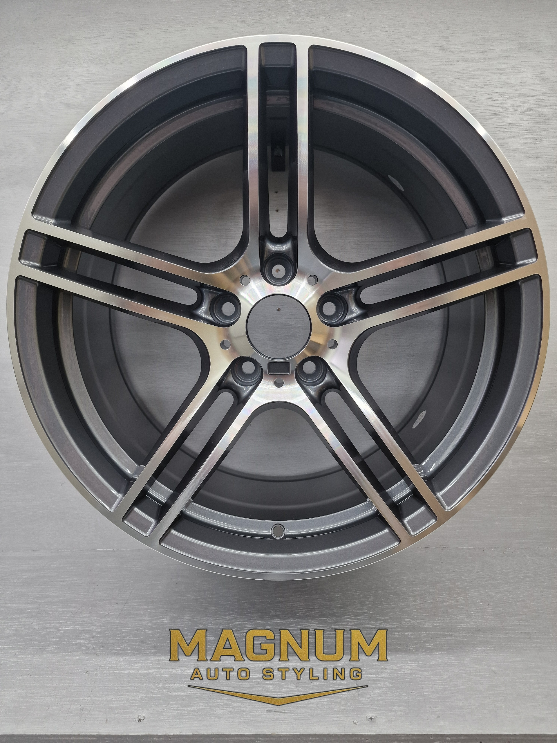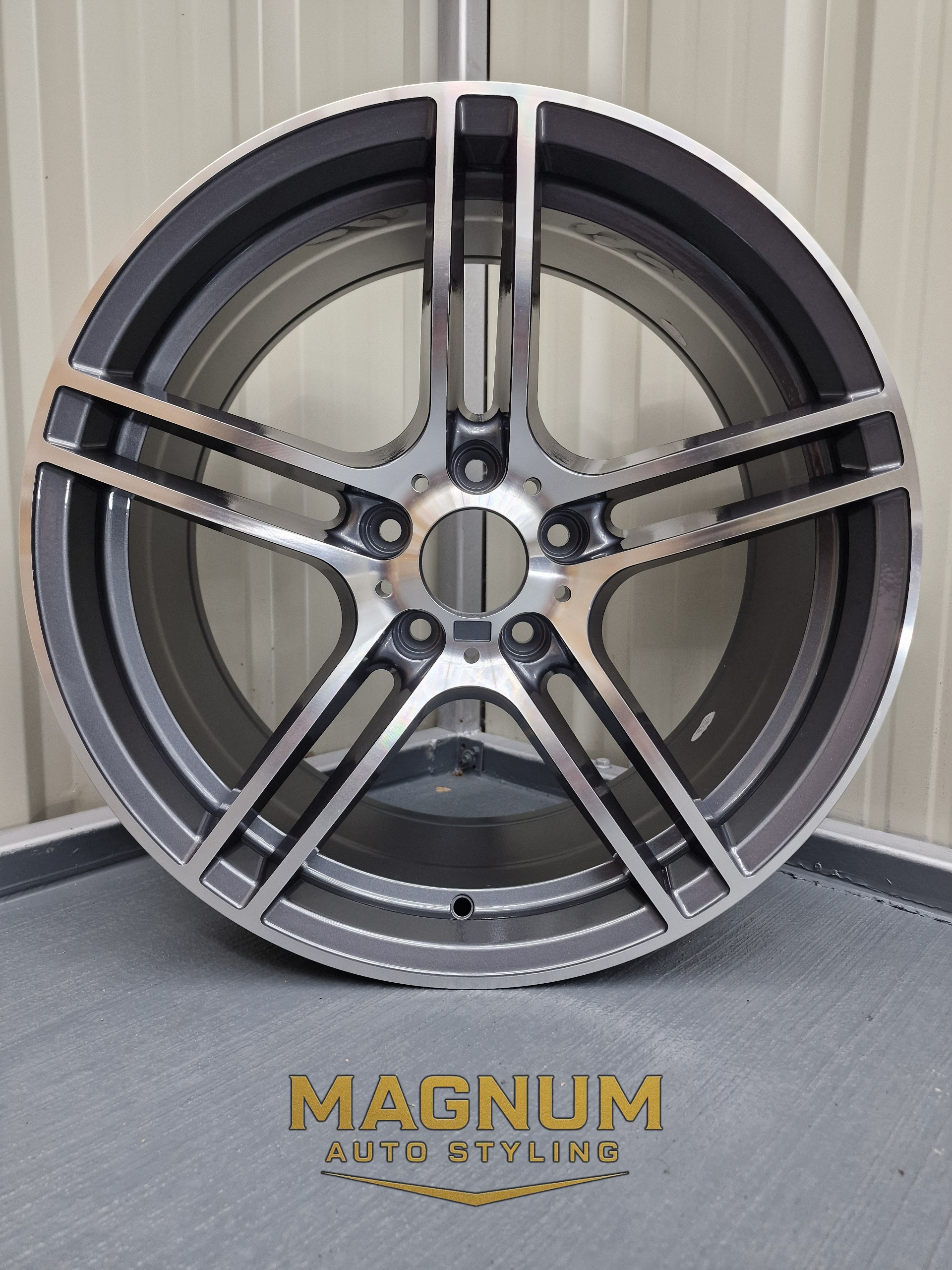 19" Staggered 313M Style - Gloss Gunmetal Grey Machined