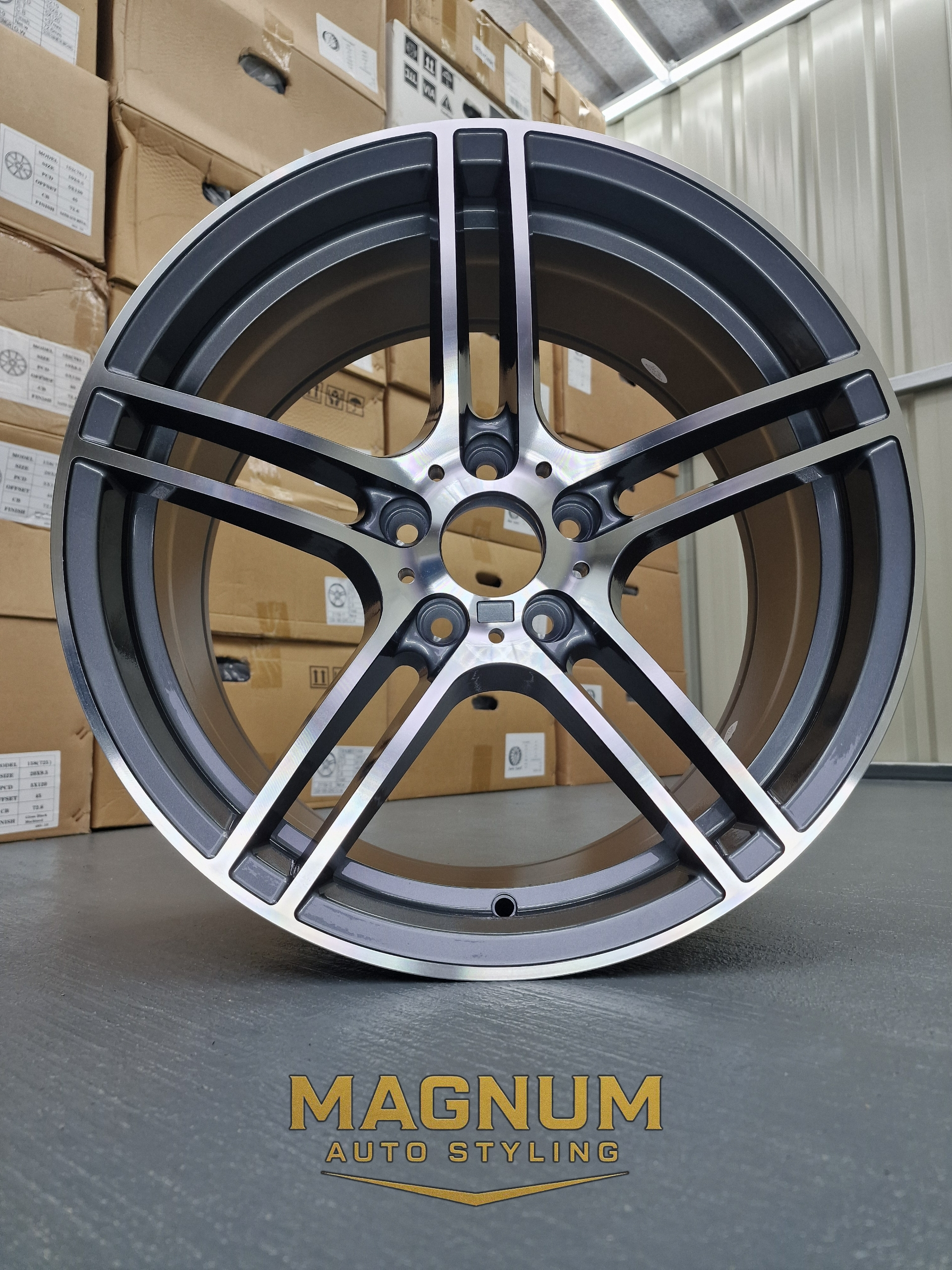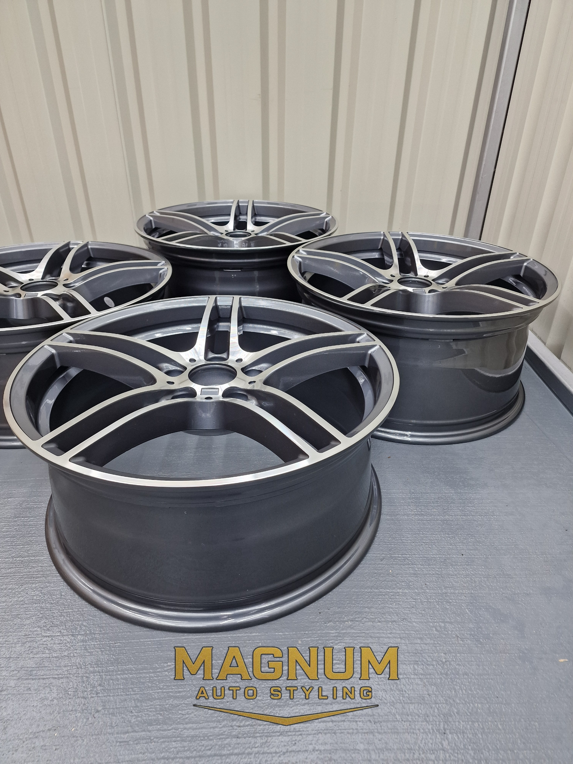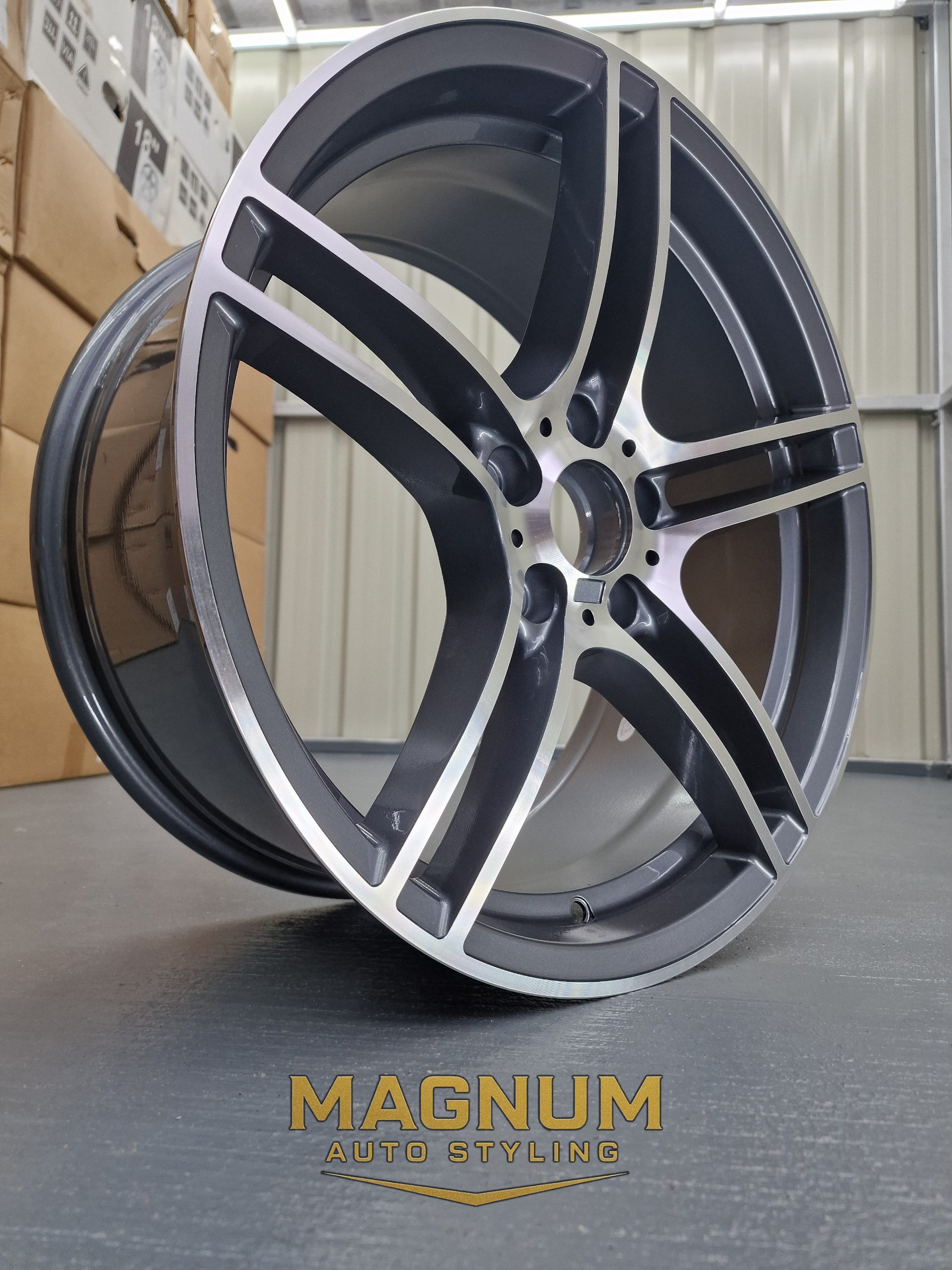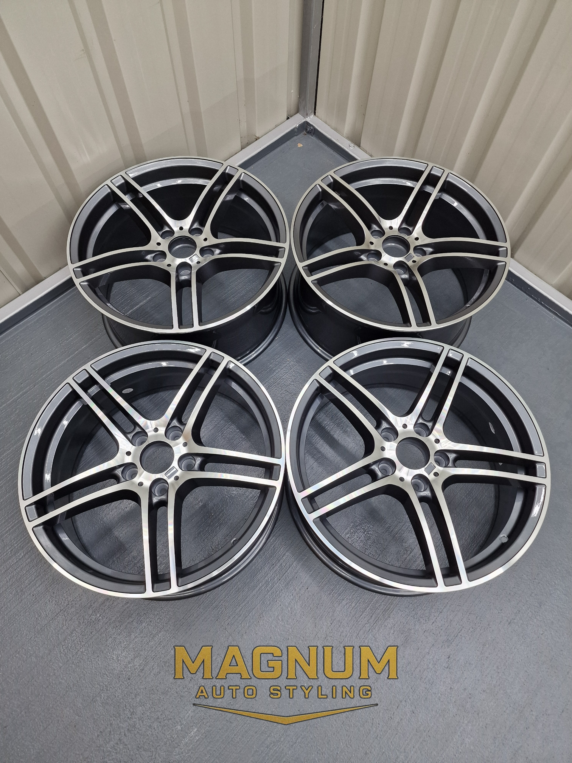 19" Staggered 313M Style - Gloss Gunmetal Grey Machined